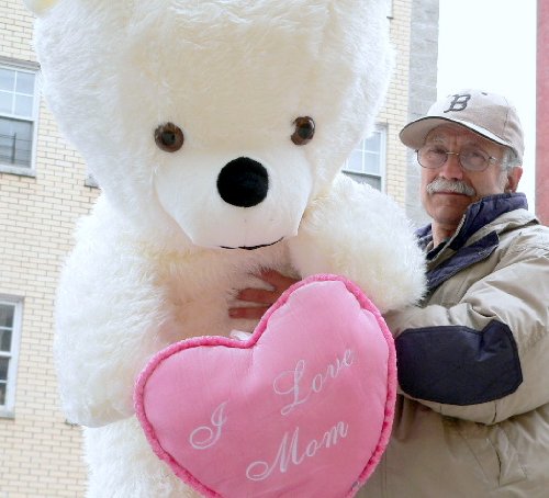 Black Friday GIANT 54-INCHES TALL WHITE TEDDY BEAR Holding I LOVE MOM HEART! Great for MOTHERS DAY or ANY DAY! SEND 15-POUNDS of AMERICAN-MADE LOVE!