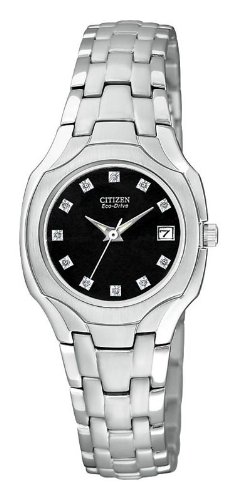 >>>>> Only $195.00 Bestseller & Compare Discount The Citizen Women's Eco-Drive Stainless Steel Watch offers a minimalist design that's been punched with some sparkling glamour. The circular black dial displays petite silver-toned hands and a date display at the three o'clock position. For added sparkle, the square-shaped hour indexes are inset with diamonds. The elegant dial is protected by a scratch-resistant mineral crystal window and boasts a stainless steel bezel and case. The sleek, stainless steel bracelet is secured with a fold-over clasp. The timepiece is not only equipped with reliable Swiss quartz movement, it is powered by light and does not require a battery, so you'll always be on time. Cheap Related Products And Free Shipping Over 25$ With Amazon Compare Price For Super Saving Sales